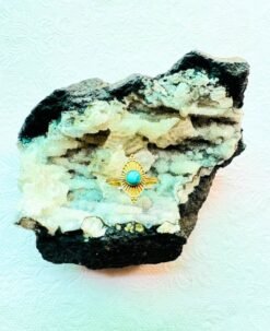 This elegant brass ring showcases the Eye of Protection, an ancient motif representing intuition, protection, and awareness. The centerpiece turquoise stone adds a vivid pop of color and natural energy, harmonizing perfectly with the golden brass frame.