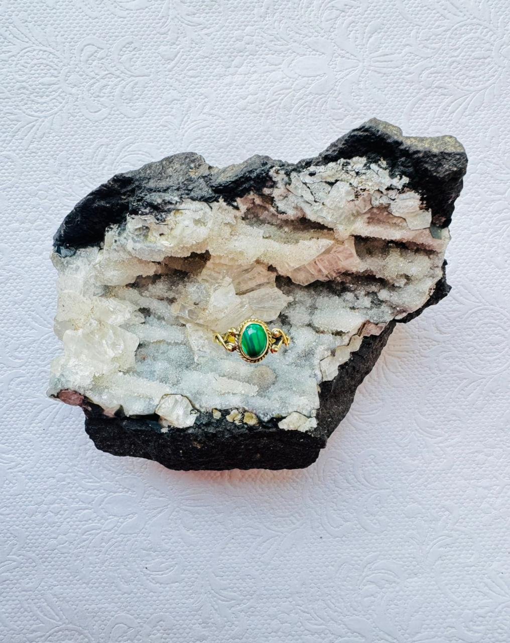 Handcrafted brass ring featuring a stunning green malachite gemstone. Adjustable open-back design suitable for all sizes a perfect fusion of bohemian elegance and artisanal charm.