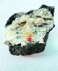 A handcrafted brass ring featuring an eye-inspired design with a beautiful pink stone centerpiece. Perfect for bohemian, mystical, and artisan jewelry lovers.