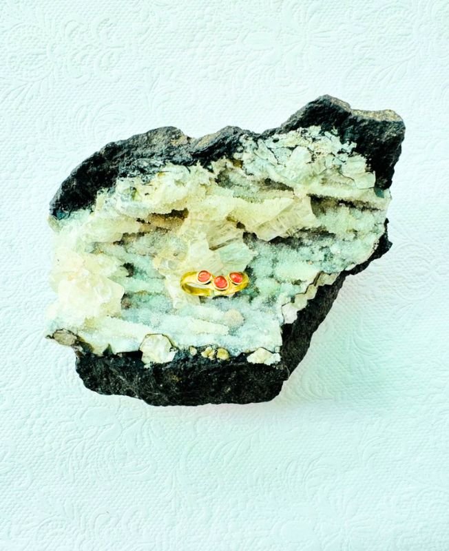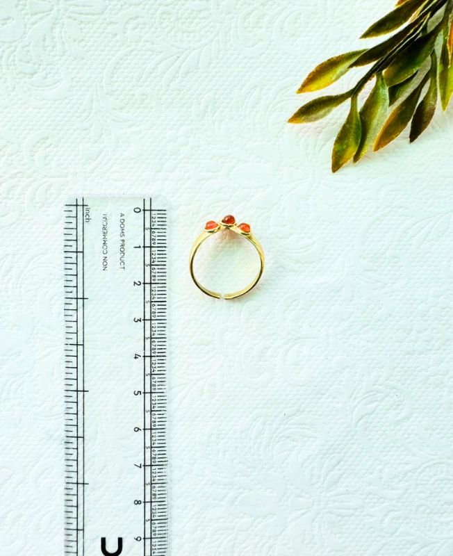 This handmade brass ring features three round red stones, symbolizing strength, vitality, and passion. The triple-stone alignment offers a bold yet refined aesthetic, making it perfect for bohemian, spiritual, or statement jewelry collections. Each ring is artisan-crafted from high-quality brass with a smooth polished finish for comfortable daily wear.