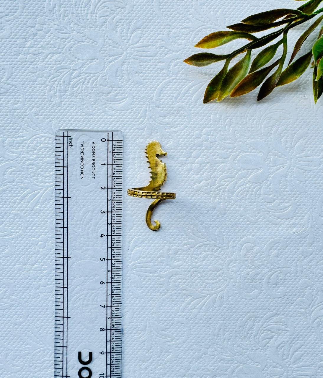 A whimsical and highly detailed brass ring featuring a majestic seahorse. This sculptural piece is perfect for ocean lovers and those who seek unique, nature-inspired artisan jewelry.