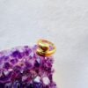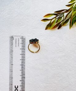 This stunning brass statement ring showcases seven beautifully polished black onyx stones set in a circular arrangement. The rich, deep tones of the stones contrast gracefully with the warm gold hues of the brass, creating a piece that’s both powerful and refined.