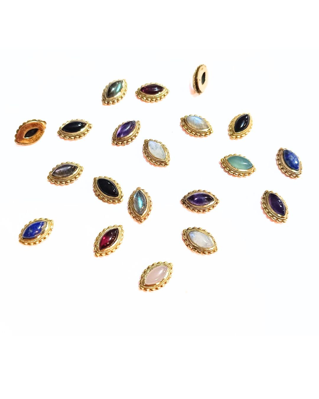 Perfect for embellishing traditional jewellery, clothing, or spiritual crafts, these floral gemstone charms bring a touch of bohemian and cultural elegance to any project. The flat back design allows for easy gluing onto surfaces, making them versatile for creative and decorative applications