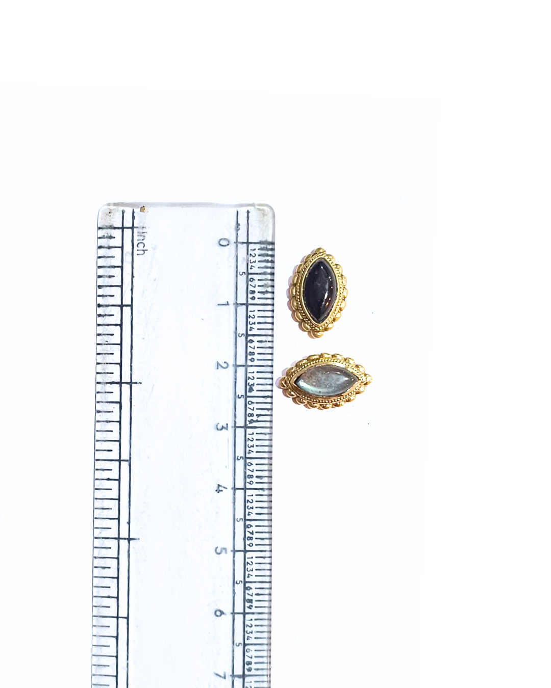 - Materials: Brass alloy base, natural/dyed gemstone
