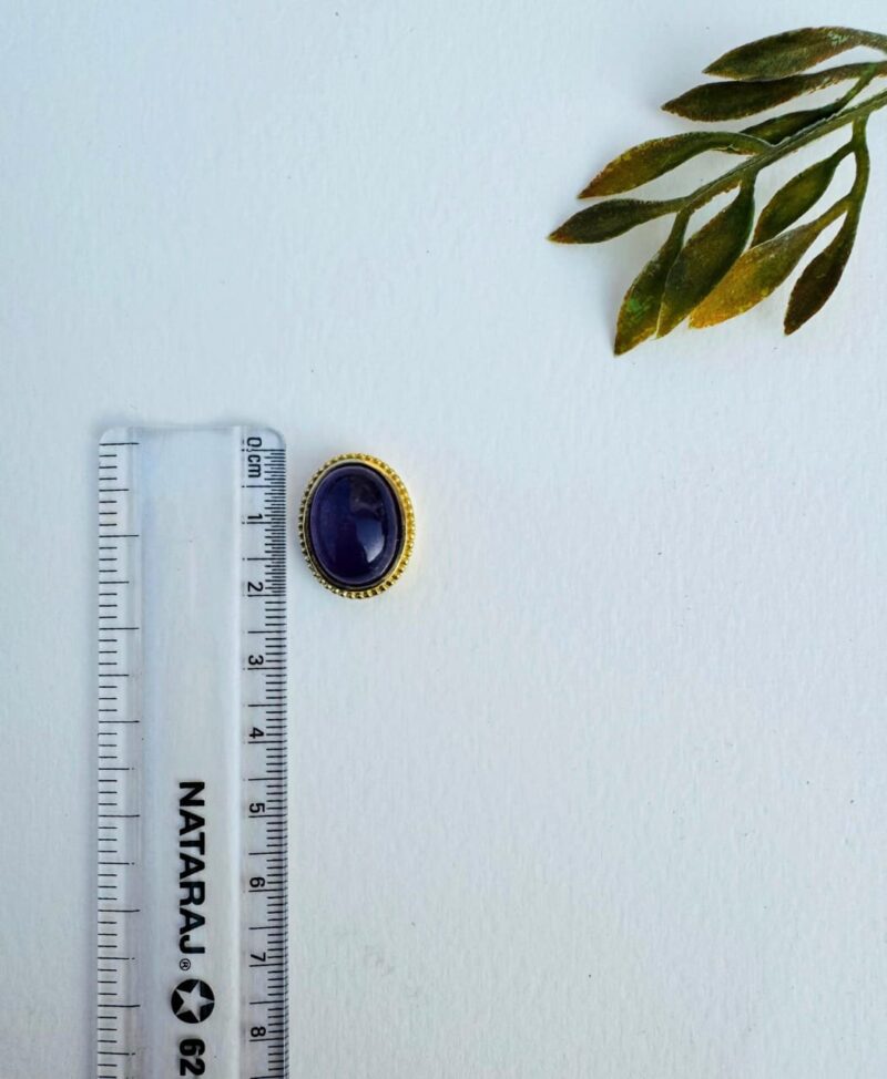 Elegant Amethyst brass gold toned settings with fine grooved edges, featuring natural Amethyst stone