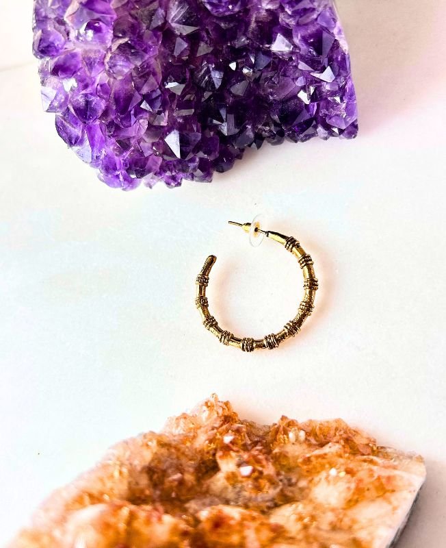 These beautiful brass bamboo-style hoop earrings are designed to bring a touch of organic charm to your everyday look. The textured bamboo-inspired pattern adds depth and sophistication, making them stand out while remaining versatile enough for both casual and elegant outfits.