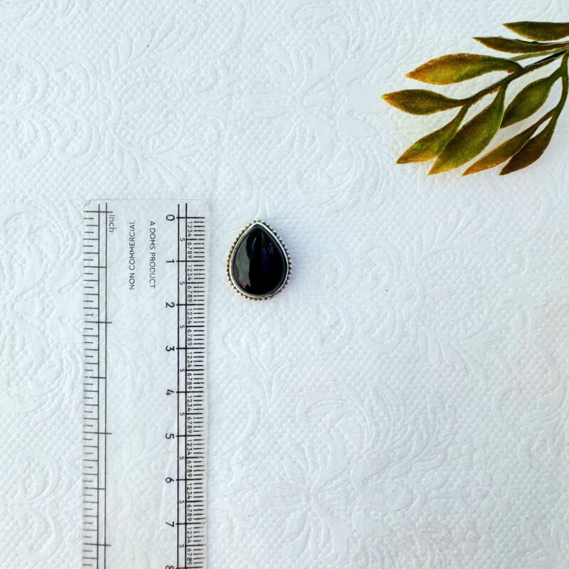 Elegant teardrop shaped brass silverfilled settings with fine grooved edges, featuring natural black onyx