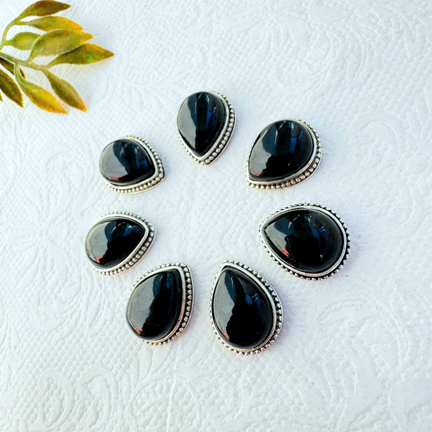 Silver Toned Black Onyx Teardrop Grooved Stones Connectors for Micro Macrame & Jewelry Making