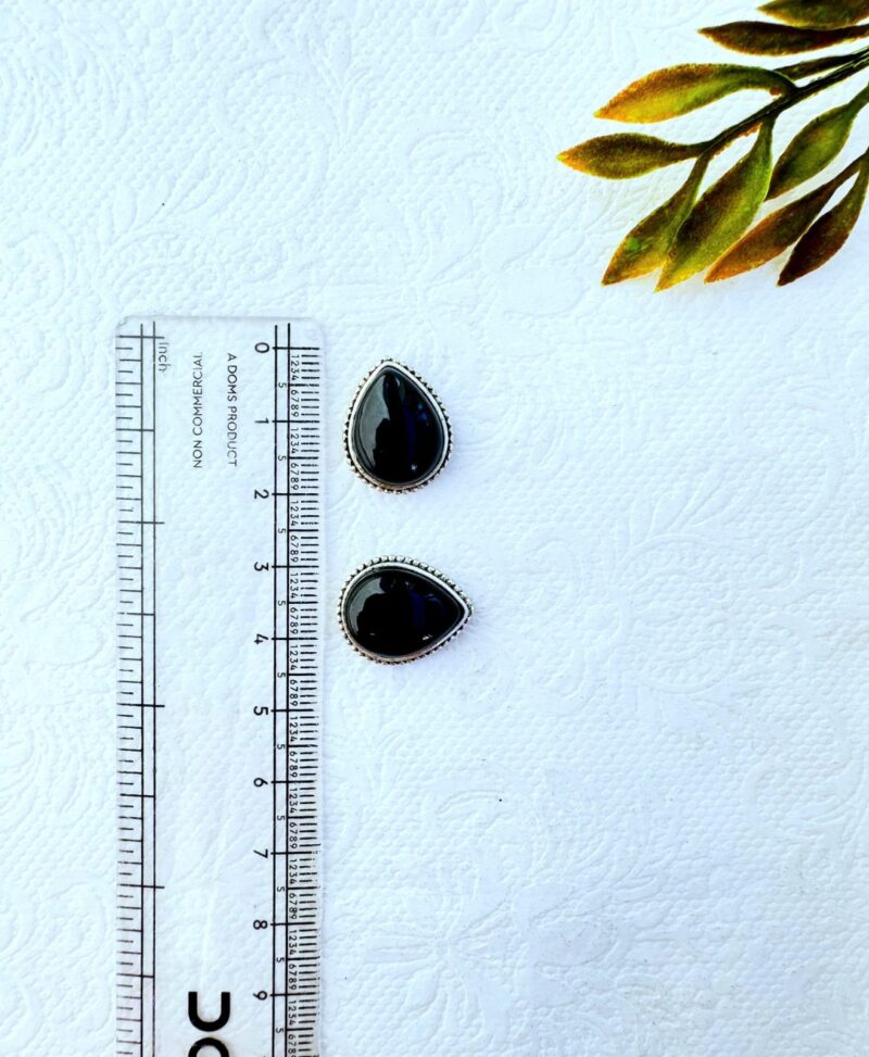 Elegant teardrop shaped brass silverfilled settings with fine grooved edges, featuring natural black onyx