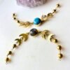 This striking brass connector is designed with detailed wings and an insect-inspired body, set with a vivid turquoise stone that adds color, character, and a strong bohemian presence. The sculptural wings give the piece movement and symbolism, while the stone creates a powerful focal point.