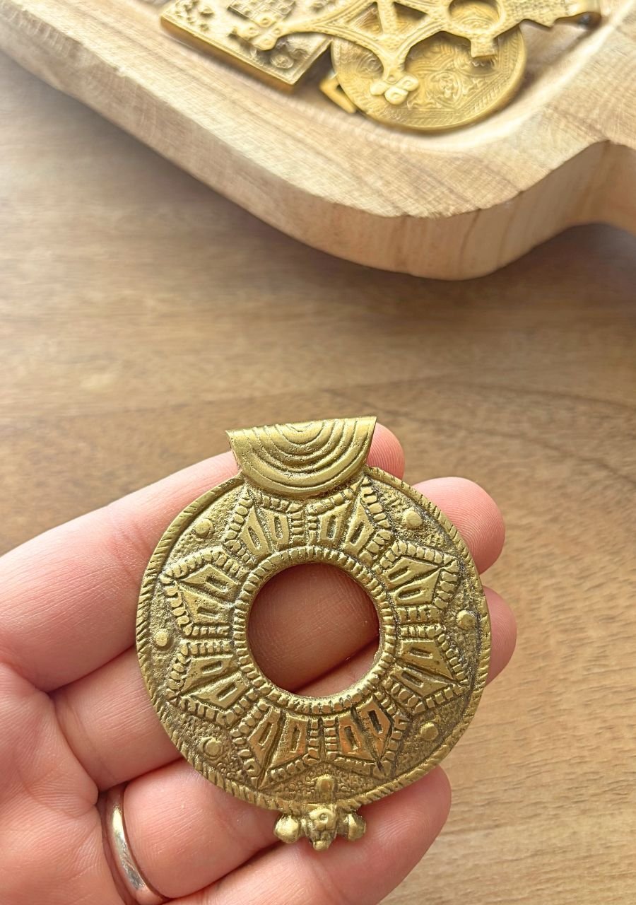 These bold ethnic brass pendants are perfect for adding an artistic and unique flair to your macrame projects, jewelry designs, and other handmade crafts. Explore our shop for more distinctive designs that complement your creations.