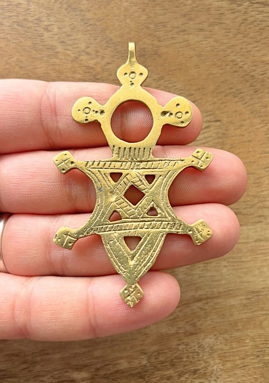 These bold African Tribal Brass Cross Pendants are perfect for adding an artistic and unique flair to your macrame projects, jewelry designs, and other handmade crafts. Explore our shop for more distinctive designs that complement your creations.