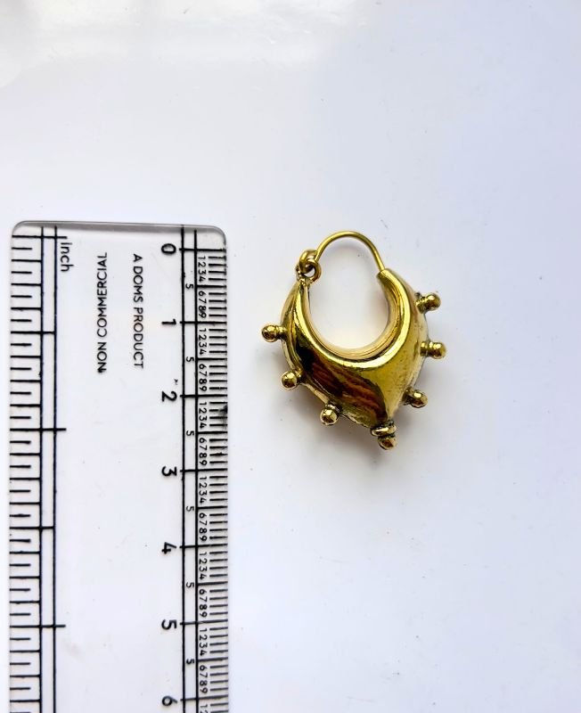 These crescent moon earrings showcase a bold tribal-inspired design, enriched with dotted detailing for depth and texture. Crafted in an antique gold tone, they bring an earthy, ethnic edge to any outfit. The crescent shape offers a mystical charm, while the dotted accents give each pair a unique, handcrafted feel.