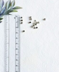 These silver-filled cube brass beads are a must-have for micro macrame and jewelry making. Their sleek, cylindrical shape and subtle metallic shine make them ideal for boho designs as well as modern, minimalist accessories. Perfect for adding structure and elegance to bracelets, necklaces, and handmade crafts, they offer a versatile and stylish touch to any project.