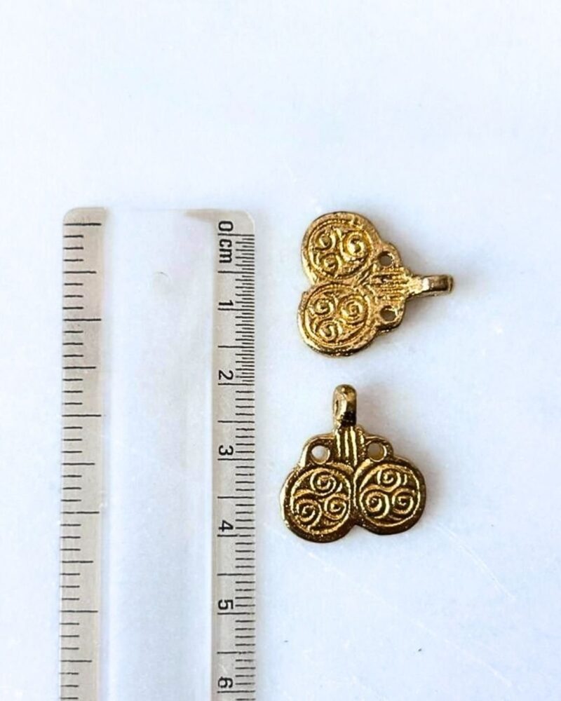 New model from our 2026 collection. Decorative brass charm featuring a double spiral filigree design with a gold tone finish, perfect for jewelry making such as earrings, necklaces, and boho or tribal designs.