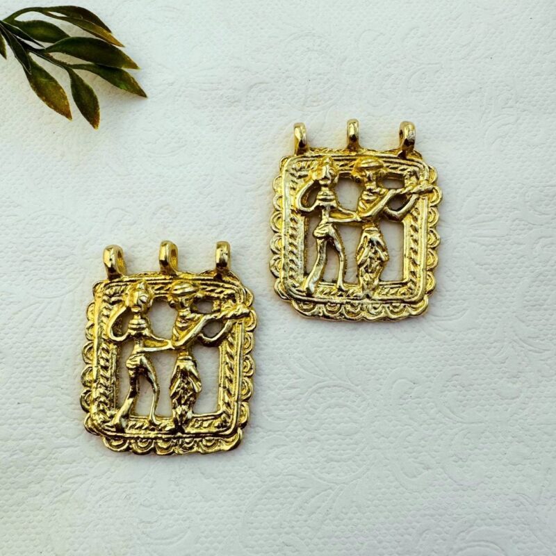 Ideal for bold jewelry, necklaces, and unique accessories. A handcrafted pendant with a detailed Egyptian relief style figure within a framed square design. Part of our exclusive collection of ethnic brass pendant, perfect for jewelry making, macrame, and creative projects.