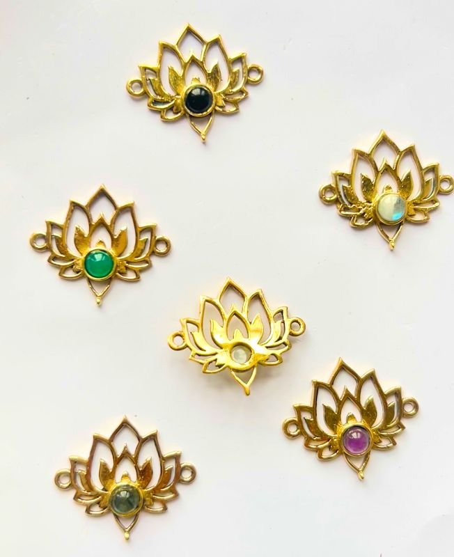 Ethnic Natural Lotus Brass Connector With Bezel Gemstone for Macrame & Jewelry Making