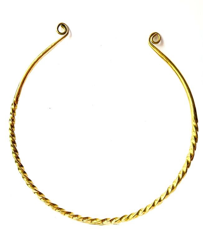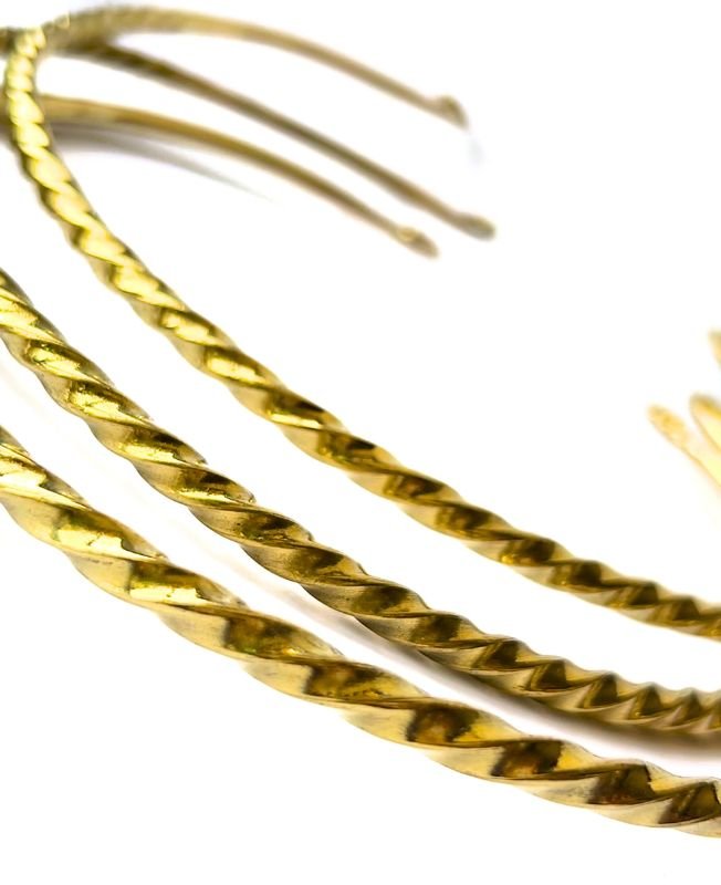 This torque choker is beautifully made from high-quality brass with a distinctive twisted rope pattern. Its open-ended design ensures a comfortable fit while adding an artisanal touch to your look.