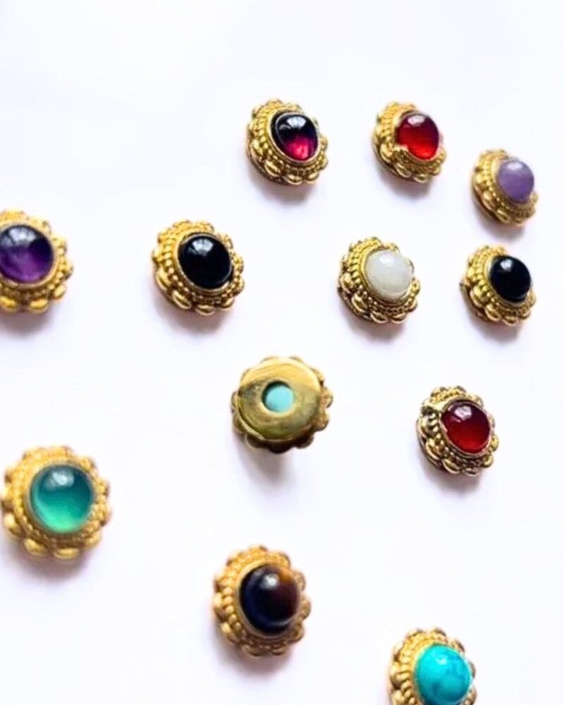 • Materials: Brass alloy base, natural/dyed gemstone