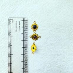 This mixed set of brass gemstone connectors combines traditional handcrafted brasswork with natural gemstone cabochons, creating a vibrant assortment of mini charms perfect for creative jewelry design. Each connector features a flower-like petal base with a finely detailed texture, surrounding a round or oval gemstone at the center.