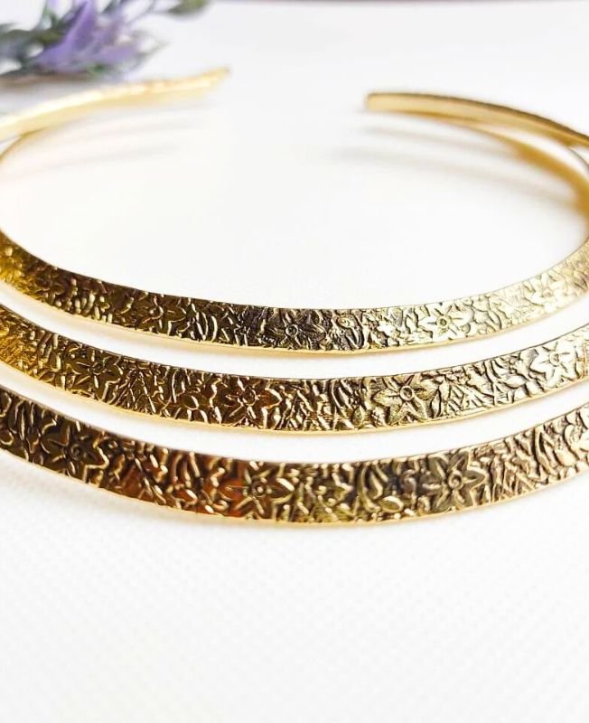 Elevate your jewelry designs with this bold and intricate floral imprint brass choker. Crafted with precision and attention to texture, each piece features a vivid embossed floral pattern across its wide surface, giving it a rich and ornate feel. The collar has a solid structure yet remains flexible enough for comfortable wear or further customization. Its antique-style design is perfect for statement pieces, tribal looks, or boho collections. Whether used alone or embellished with charms and beads, this choker base offers endless possibilities for creativity.