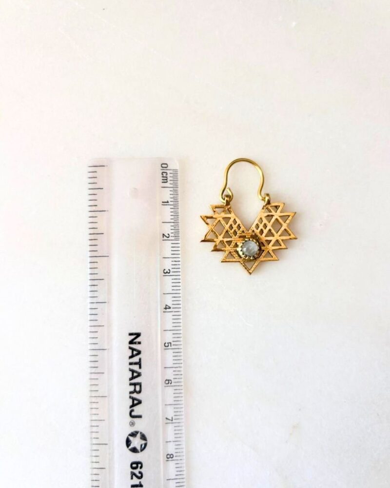 Handcrafted gold plated brass earring featuring a layered geometric star shapes with a central stone accent. Lightweight and perfect for a bold yet elegant look.