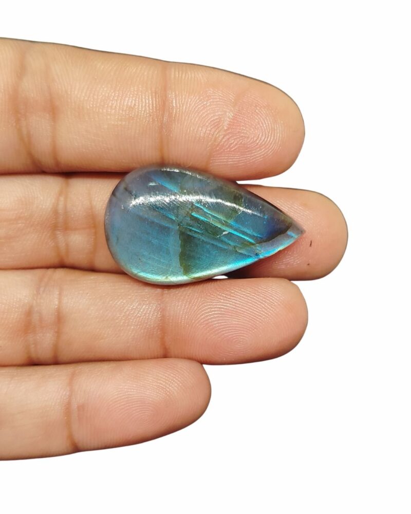 36mm Labradorite Cabochon – Drop Light Blue Yellow Flash