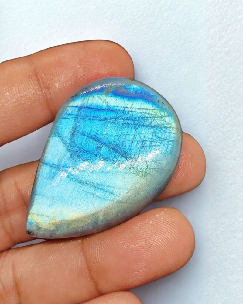 Our labradorite is responsibly sourced, primarily from Madagascar, and professionally cut and polished in India by skilled artisans. Each stone is carefully inspected, individually coded, and offered as a single, one-of-a-kind piece.