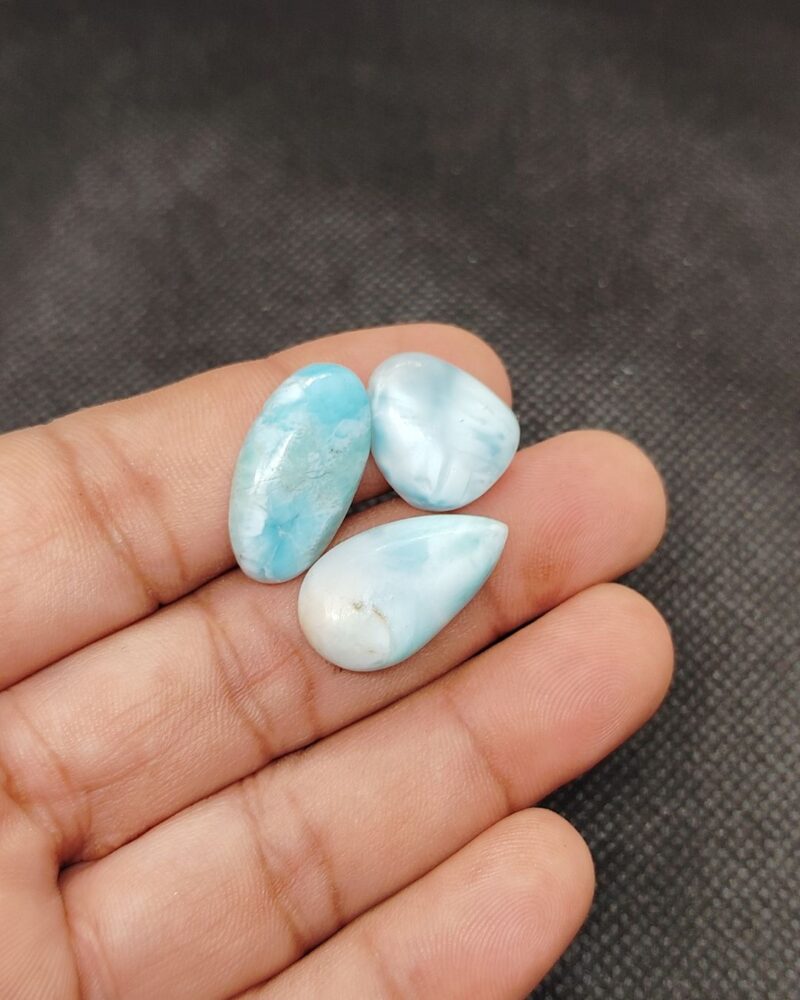 Larimar Cabochon – Set of 3, Mixed Sizes (17-23mm)