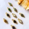 This beautiful marquise gemstone connector features a hand-cut stone securely set in an ornate brass frame with a beaded edge. The shape and double loops make it perfect for adding to necklaces, bracelets, or even statement earrings. Each connector offers a polished look that blends vintage charm with modern minimalism.