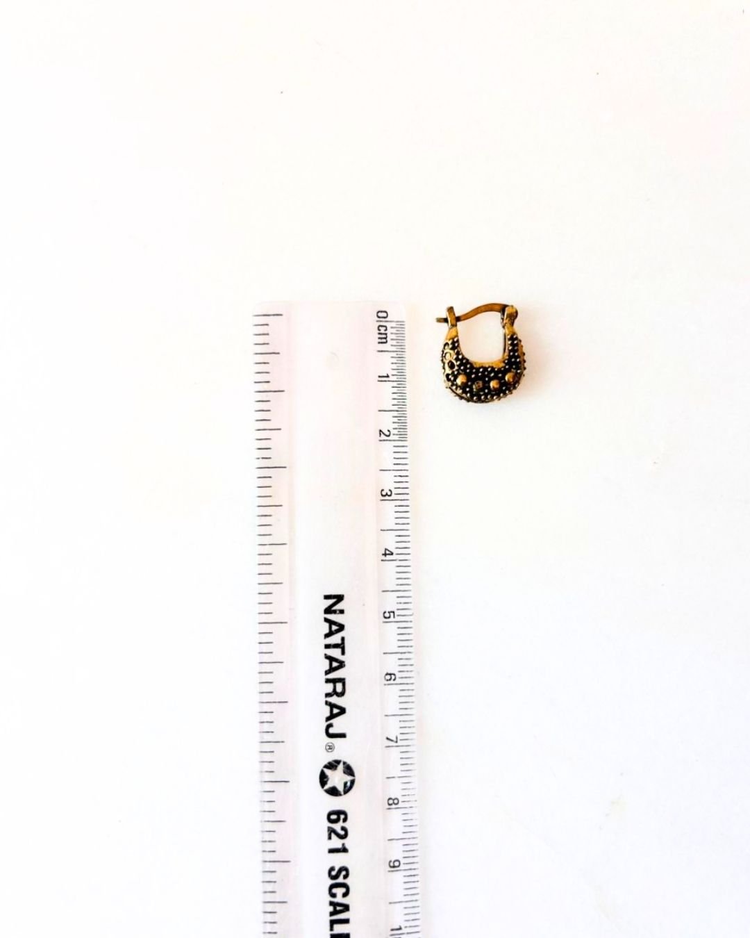 Made from high-quality brass, the earring combines a warm golden tone with darker oxidized details that highlight the decorative textures. Its small scale makes it lightweight and comfortable, ideal for everyday wear or as part of layered ear styling.