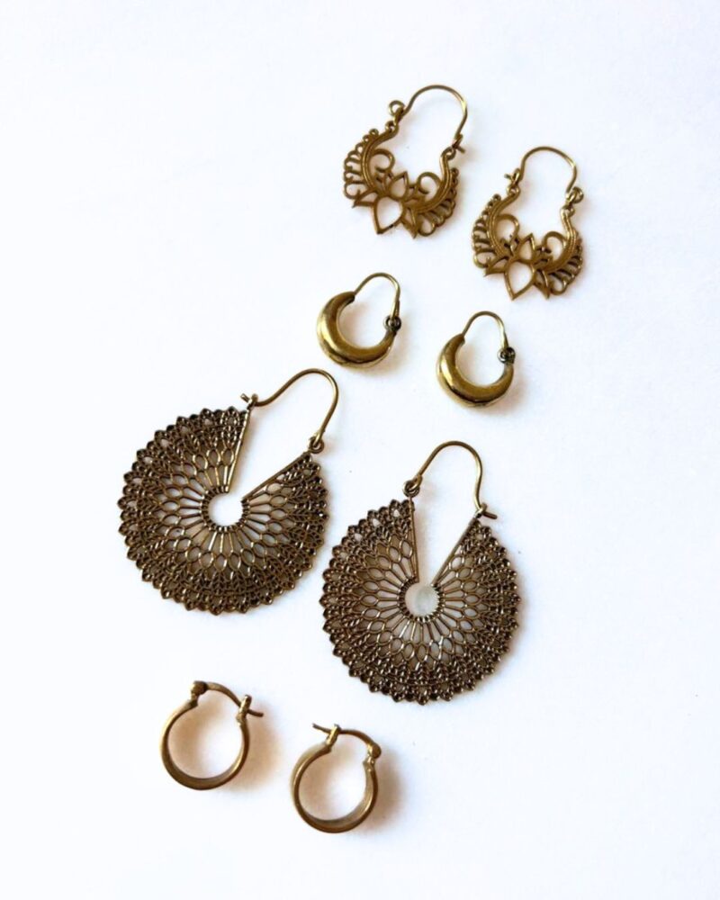 A curated set of brass earrings featuring a mix of unique designs.