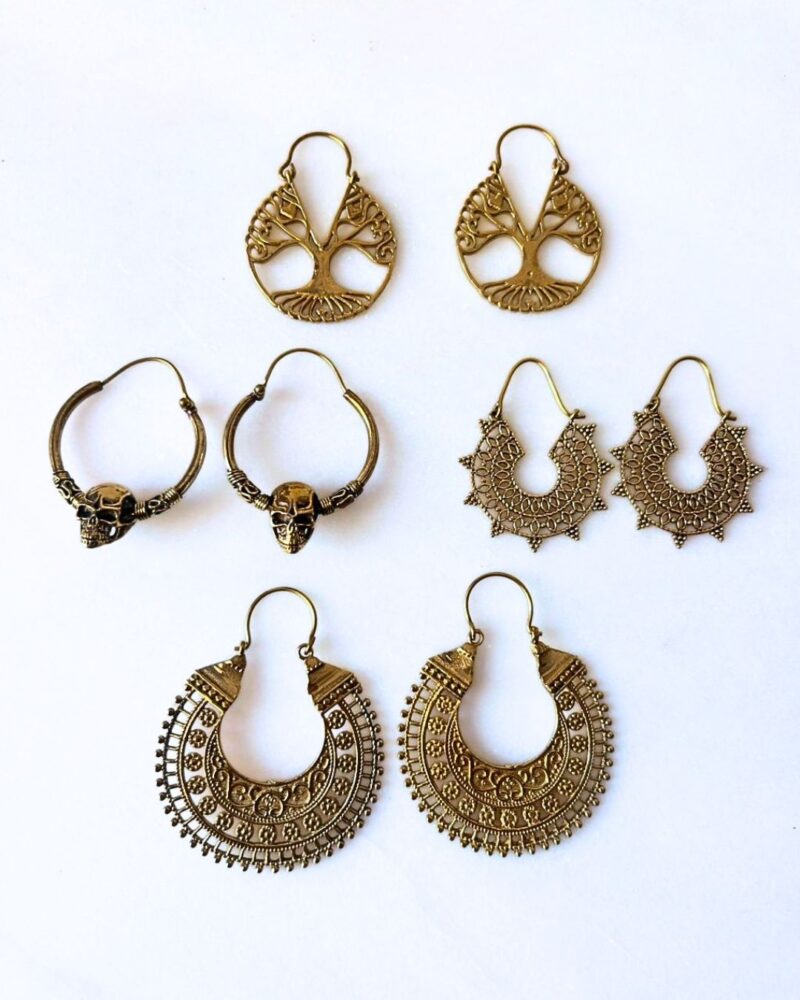 A curated set of brass earrings featuring a mix of unique designs.