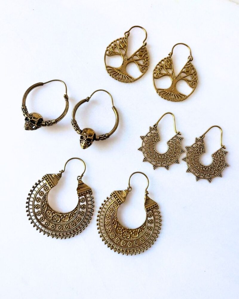Brass earrings set with 4 unique pairs.