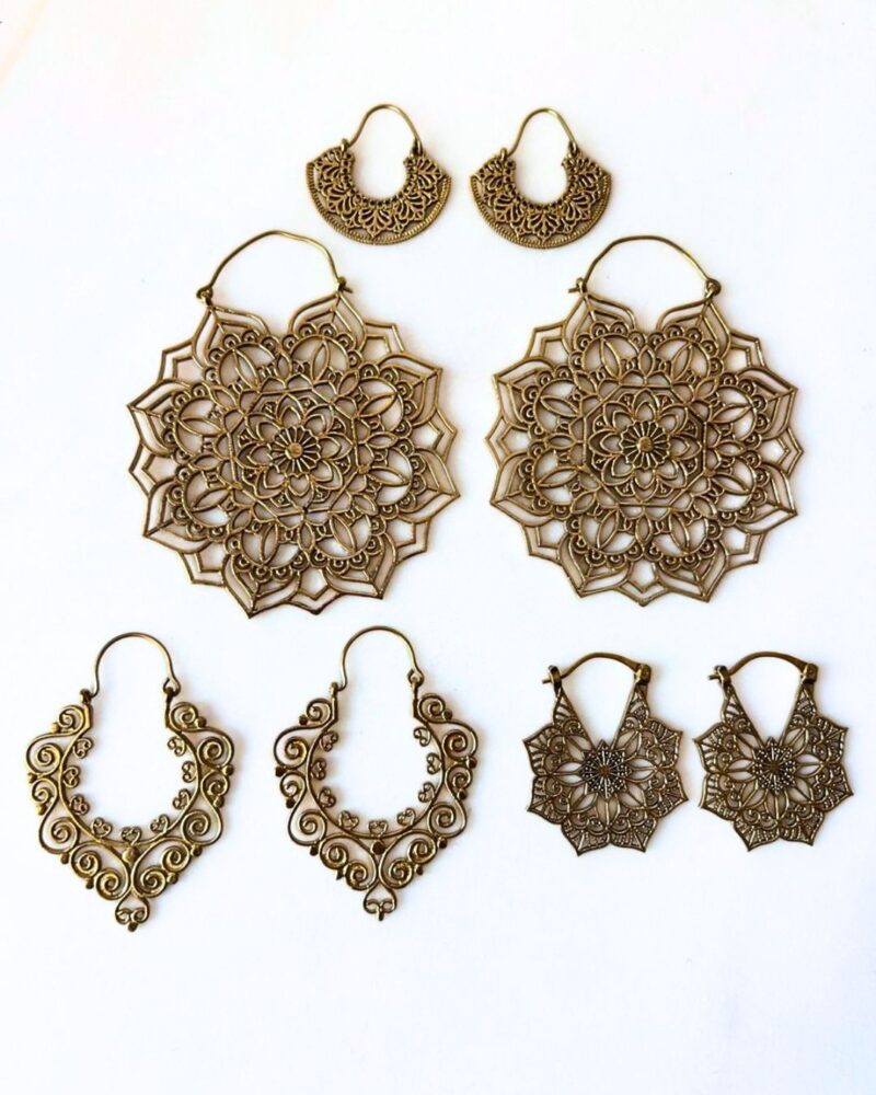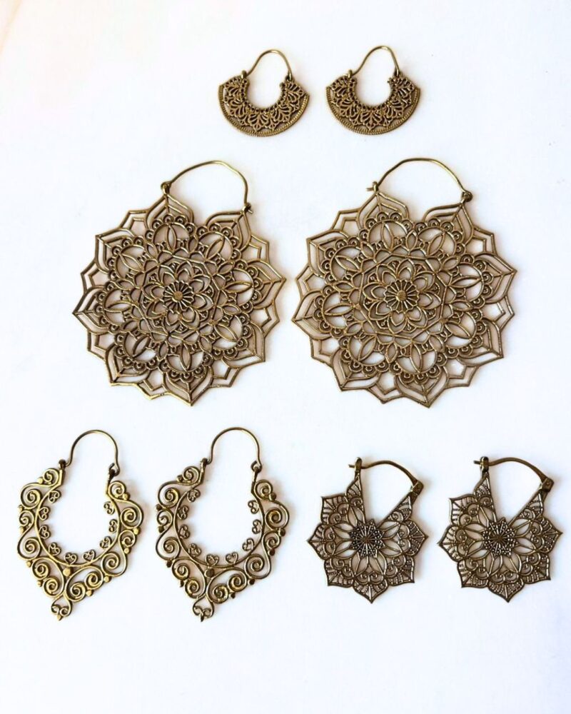 Brass earrings set with 4 unique pairs.