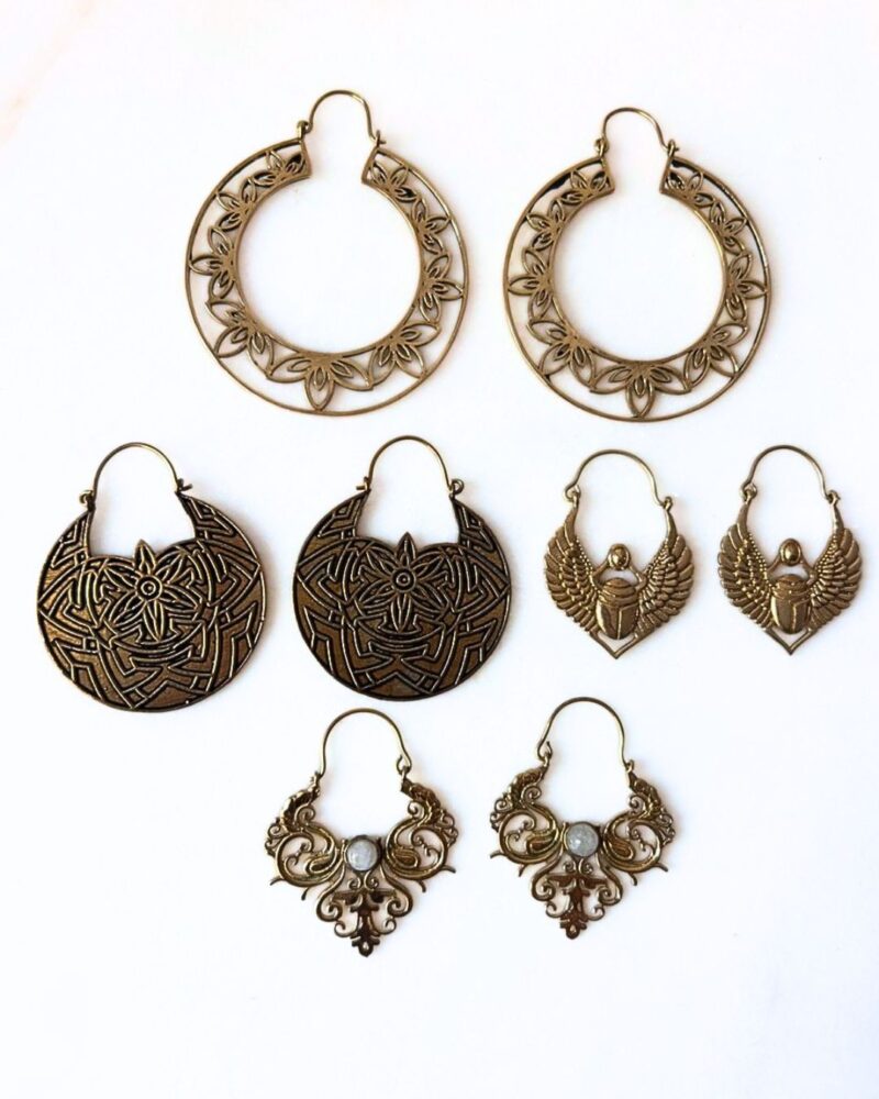Brass earrings set with 4 unique pairs.