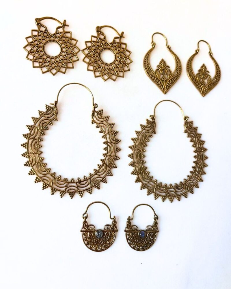Brass earrings set with 4 unique pairs.