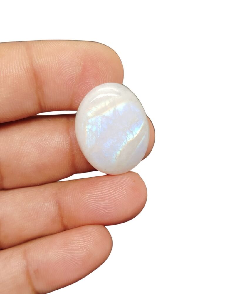 Our Moonstone is responsibly sourced and professionally cut and polished in India by skilled artisans. Each stone is carefully inspected, individually coded, and offered as a single, one-of-a-kind piece.