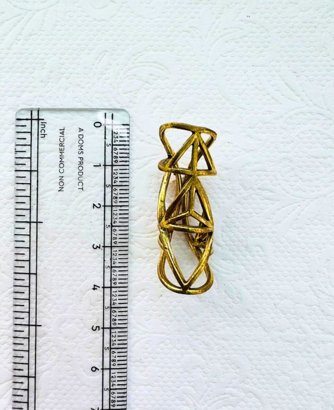 Make a cutting-edge statement with this abstract geometric brass dreadlock cuff. Moving away from traditional patterns, this piece showcases a dynamic and architectural design composed of open triangles, lines, and loops that create a truly modern, three-dimensional sculpture for your hair. The design suggests movement and complexity, appealing to those with an avant-garde sense of style.