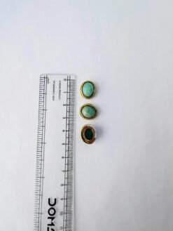 This brass cabochon settings showcases oval stones in shades of Amazonite, each securely encased in a detailed brass bezel. The brass frame features a subtle rope like groove around each edge, adding both texture and richness to the design.