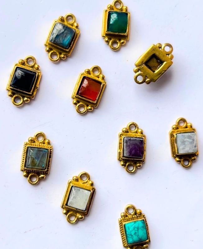 Regal Radiance – Square Brass Stone Connectors in Majestic Colors for Macrame & Jewelry Making