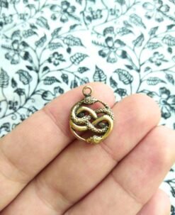 A finely detailed charm featuring two intertwined snakes in a symbolic knot pattern. Antique brass finish adds an ancient, mystical feel. Ideal for minimalist jewelry with meaning.