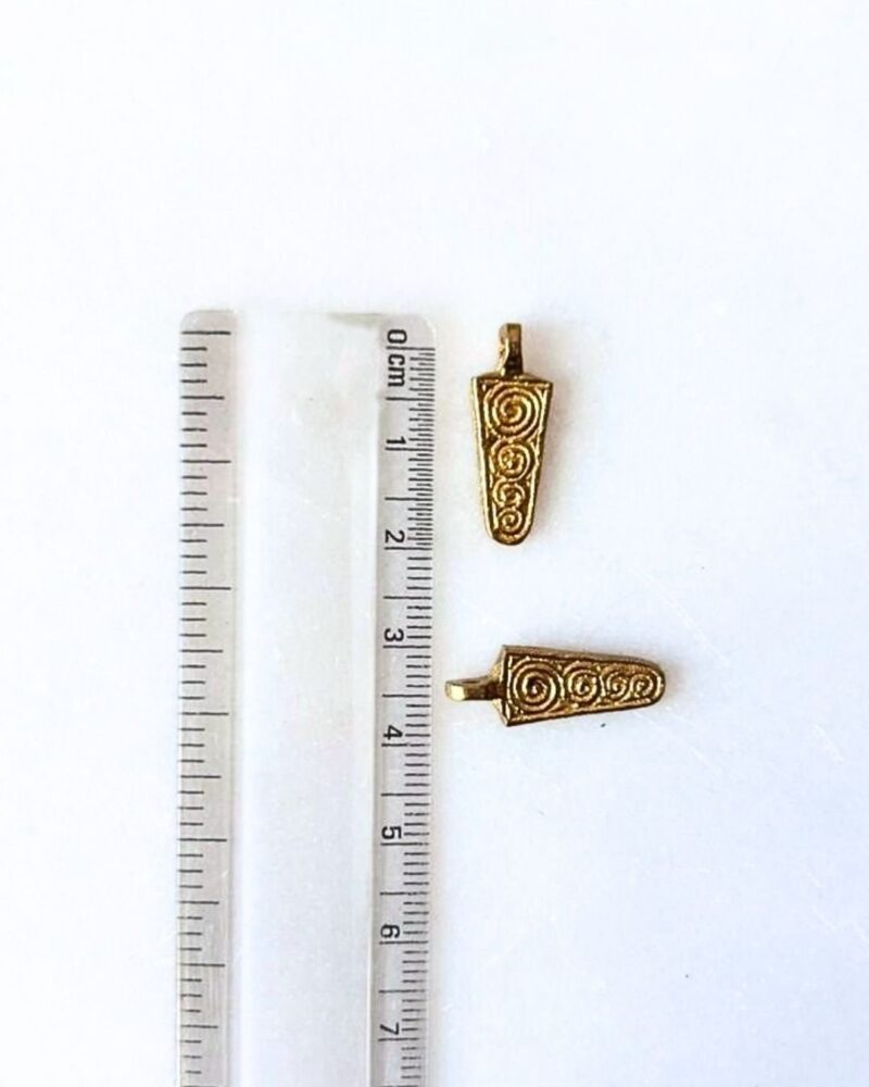 New model from our 2026 collection. Decorative brass charm with a vertical spiral relief design and gold tone finish, perfect for jewelry making such as earrings, necklaces, and boho or tribal designs.