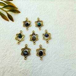 Each piece is cast from high-quality brass and lightly polished to retain its artisan texture and warm tone. Due to the handcrafted nature and natural stones, slight variations in color and shape make every charm unique.