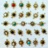 This beautiful assortment of Brass Mixed Charms features hand-finished lotus-shaped designs, each centered with a natural gemstone in rich, earthy hues such as turquoise blue, tiger eye brown, and grey labradorite tones. The pendants include both single-loop and double-loop connector styles, making them perfect for creating bohemian bracelets, earrings, necklaces, or spiritual jewelry pieces.