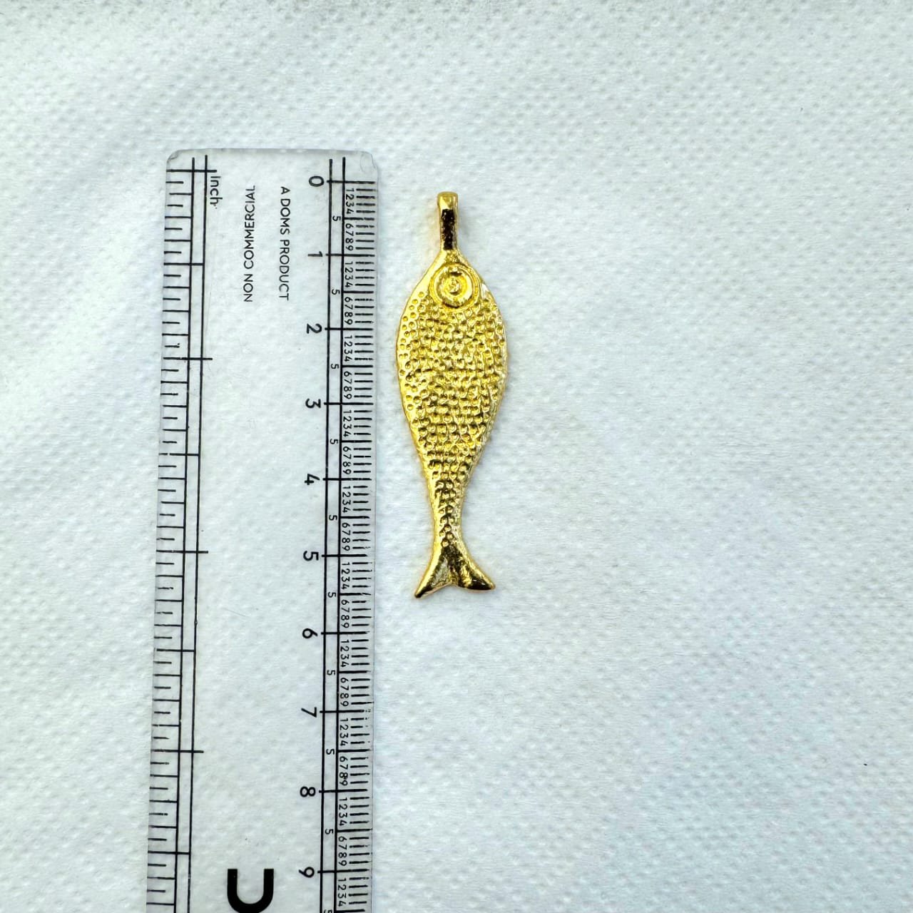 This brass charm features a beautifully detailed fish design with a raised, textured surface that adds depth and character. Finished in a warm gold tone, it brings a subtle shine while keeping an organic, handcrafted feel.