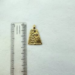 This solid brass pendant charm features a distinctive trapezoid shape with a raised abstract symbol at its center. The motif appears intentionally primitive and organic, giving the charm an ancient, talisman-like character. The surface is richly textured, with uneven relief and subtle depth that highlight its handcrafted aesthetic.