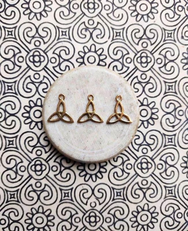 These delicate brass charms are designed in the form of the Triquetra, also known as the trinity knot – a symbol of unity, eternity, and spiritual connection. Lightweight yet durable, each charm is crafted with clean, minimal lines that suit both classic and modern jewelry styles.
