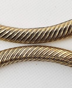 This striking choker set features three handcrafted brass pieces, each designed with a detailed twisted rope texture that gives the set a bold, sculptural presence. The diagonal pattern wraps around each band with precision, creating movement and dimension that catches the light from every angle. Finished with smooth ball ends, they sit comfortably at the neck.