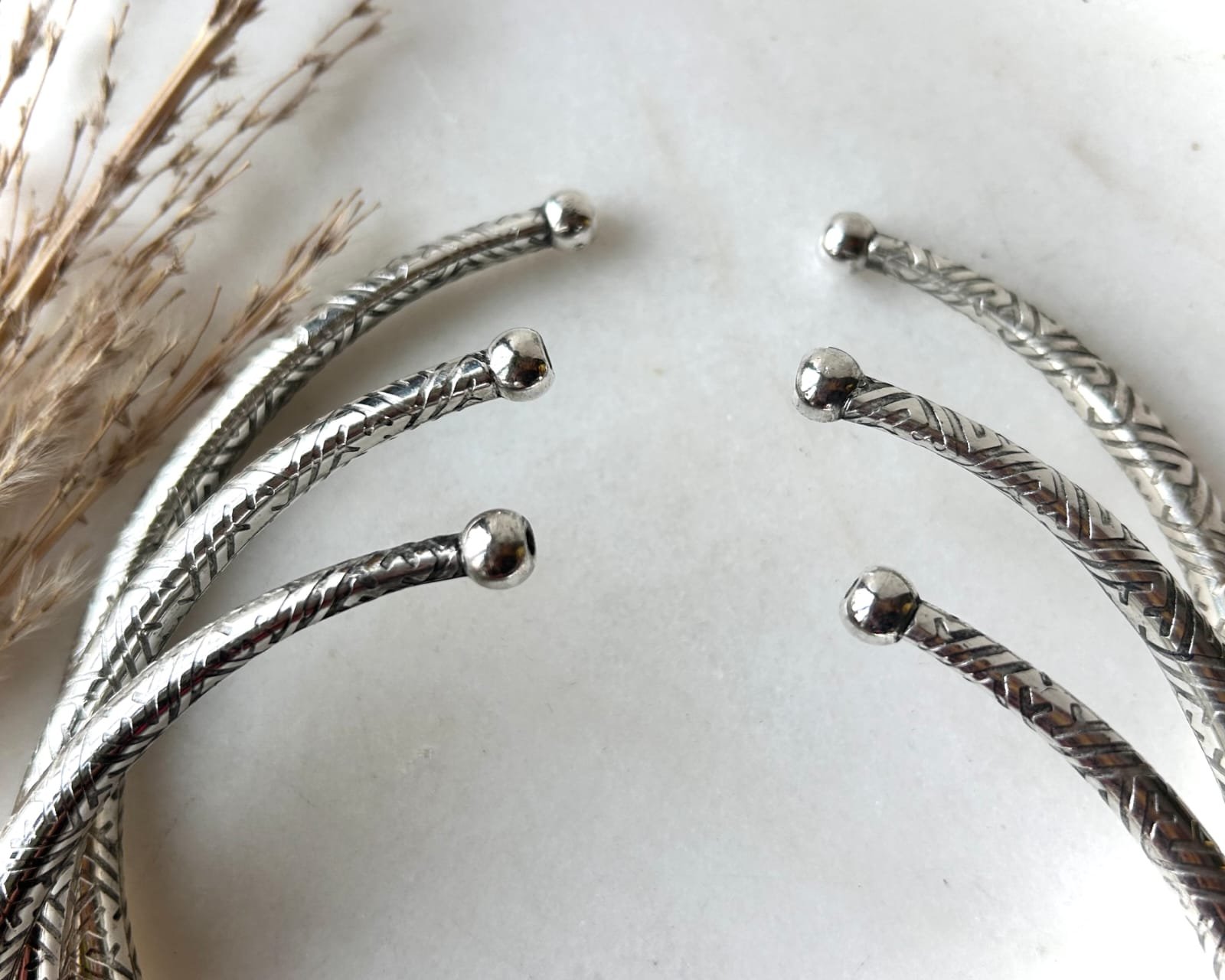 The Woven Path Silver Tone Brass Choker is defined by its continuous engraved chevron motif—an intricate, hand-finished pattern that creates depth, movement, and subtle reflection from every angle. The repeating geometric lines evoke woven paths and ancient symbols, giving the piece a strong yet timeless character.